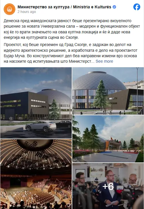 Ова не е само објект – ова е инвестиција во културата, идентитетот и иднината на Скопје. Универзалната сала ќе стане модерен симбол на културна размена, креативност и заедништво, достапна за сите граѓани. Со нејзината изградба, создадовме предуслови Скопје да го зачува духот на својата културна традиција, но и да ја зајакне својата улога како европска престолнина на културата во 2028 година, истакна министерот за култура и туризам, Зоран Љутков.