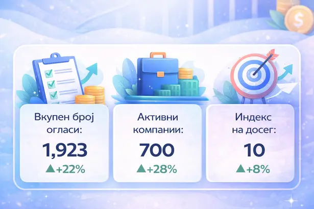 Клучен заклучок: Фактот што бројот на компании кои вработуваат (+28%) расте побрзо од самиот број на огласи (+22%) е одличен индикатор. Тоа значи дека вработувањата не се сконцентрирани само кај неколку големи гиганти, туку дека потребата за кадар е широко распространета низ целата економија.