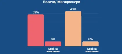 - Возачи: Понудата е зголемена за +39%, со зголемен број на компании (+43%).