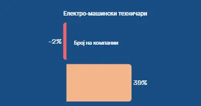 Феноменот кај Техничарите:Побарувачката за Електро-машински техничари скокна за +39%, но бројот на компании што ги бараат всушност падна за -2%.