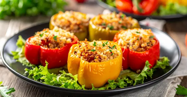Класика на македонската трпеза, но во посна варијанта. Оризот се комбинира со кромид, морков, шампињони и зачини, а пиперките се печат во рерна со малку доматен сос. Резултатот е ароматично и лесно јадење кое може да се служи и топло и ладно.