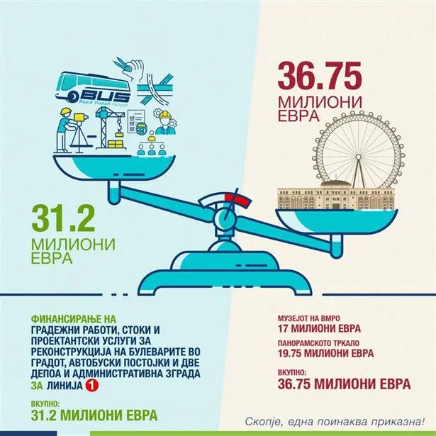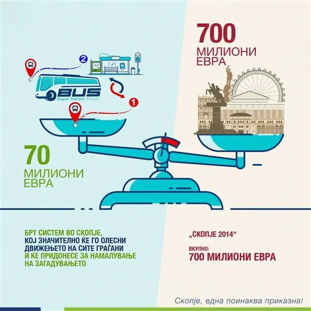 Но, најважно од сѐ - со овој проект сакаме да покажеме колку многу може да се постигне доколку имате желба и решителност да постапувате исправно и за доброто на сите околу вас. Само за споредба, целиот БРТ проект за кој веруваме дека ќе направи вистинска разлика за Скопје и сите негови жители, чини само една десетина од таканаречениот проект Скопје 2014.