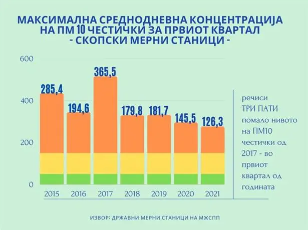 Дополнително, покрај постојаниот пад, доколку се вратиме само неколку години наназад, ќе видиме дека нивото на ПМ10 μg/m3 за само 4 години паднало речиси три пати.