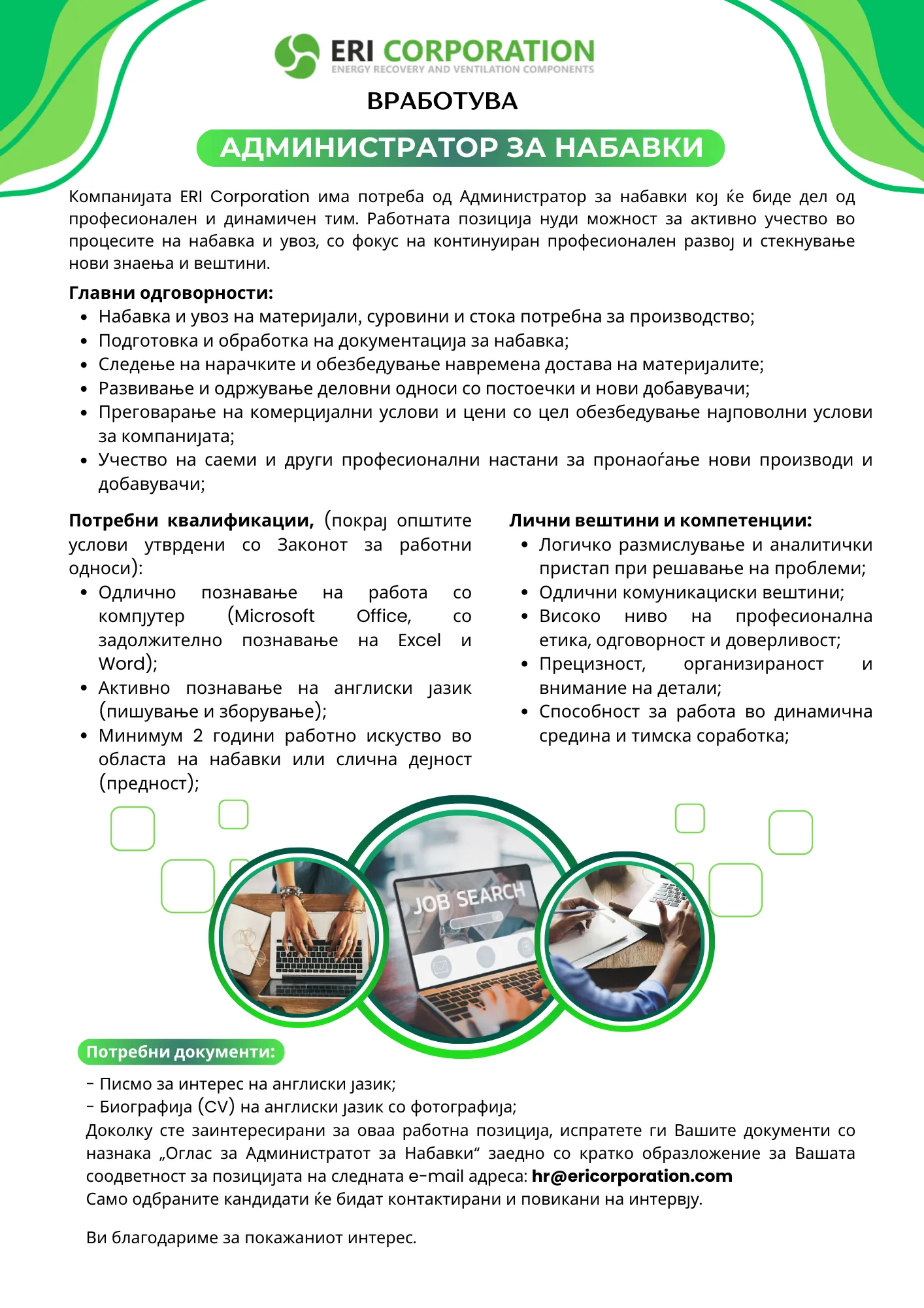 Активни огласи од ЕРИ Корпорација Дооел: