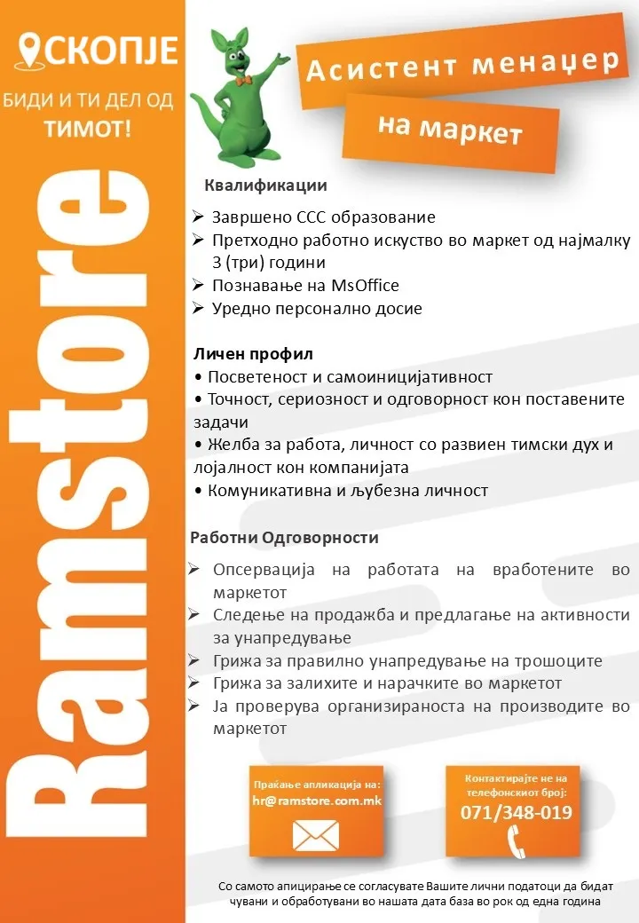 Асистент менаџер на маркет - Скопје