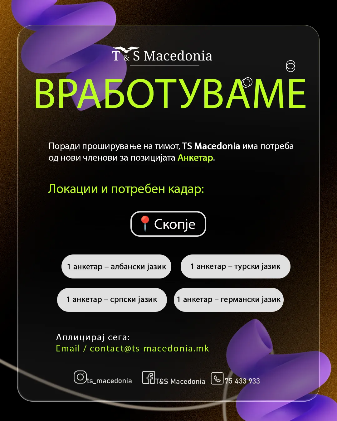 Поради проширување на тимот, TS Macedonia има потреба од нови членови за позицијата Анкетар.