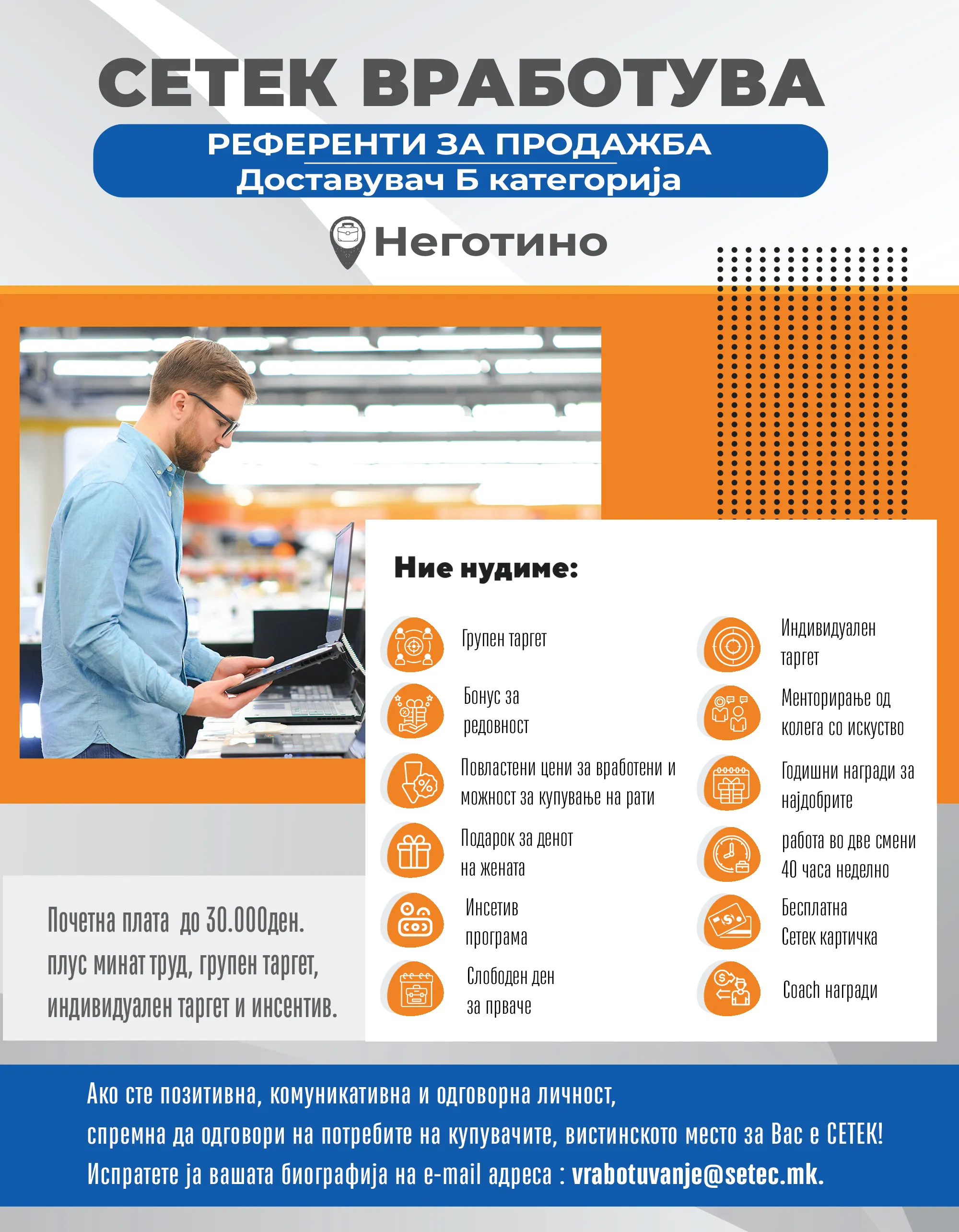 Активни огласи од СЕТЕК Сè од техника ДОО: