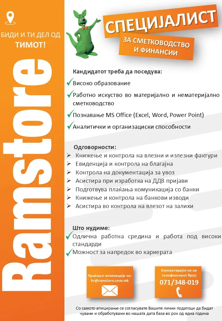 Рамсторе Македонија е една од водечките малопродажни синџири во земјата. Од своето основање во 2005 година, компанијата постојано расте и денес располага со широка мрежа на супермаркети и трговски центри... повеќе за компанијата »