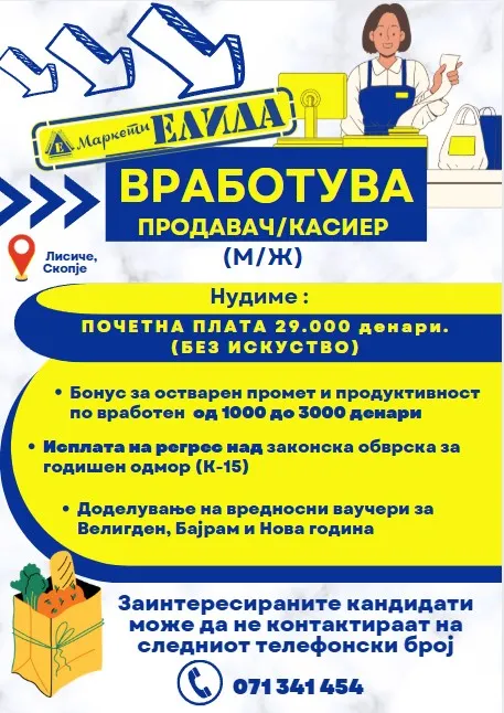 • Позиција: Персонал во продавница/Касиер