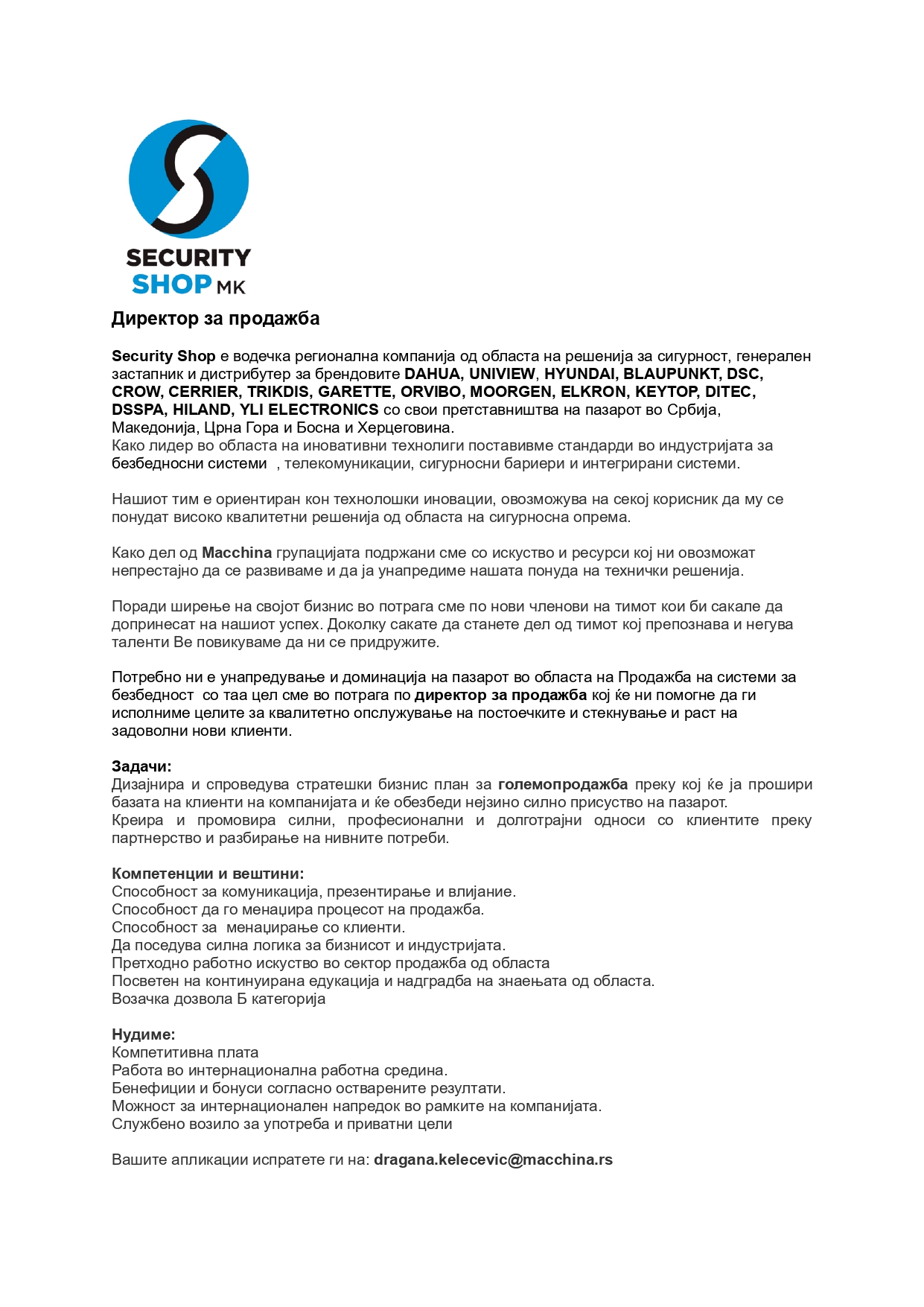 Security Shop е водечка регионална компанија од областа на решенија за сигурност, генерален застапник и дистрибутер за брендовите DAHUA, UNIVIEW, HYUNDAI, BLAUPUNKT, DSC, CROW, CERRIER, TRIKDIS, GARETTE,... повеќе за компанијата »