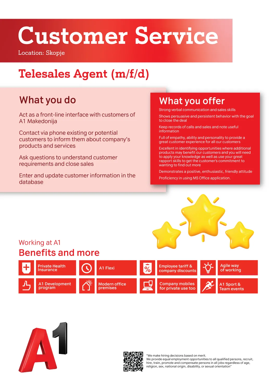 Компанијата А1 Македонија е член на Групацијата А1 Телеком Австрија, водечки провајдер за комуникациски и дигитални решенија во Централна и Источна Европа, којшто работи во седум држави и обезбедува... повеќе за компанијата »