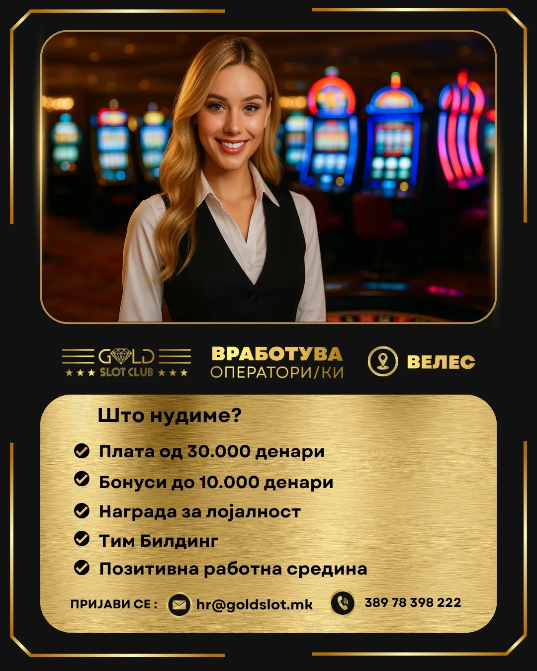 Голд Слот Клуб – Велес има потреба од професионални и динамични поединци да се приклучат на нашиот тим како оператори/ки!