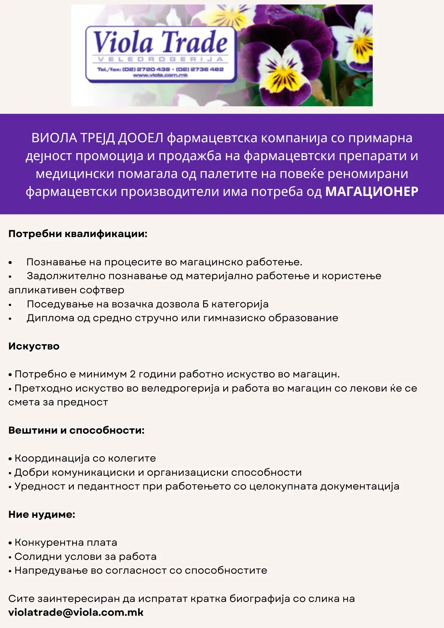 Активни огласи од ПЗУ Аптека ВИОЛА: