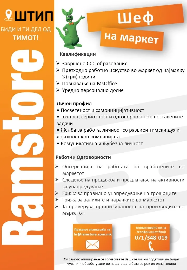 Рамсторе Македонија е една од водечките малопродажни синџири во земјата. Од своето основање во 2005 година, компанијата постојано расте и денес располага со широка мрежа на супермаркети и трговски центри... повеќе за компанијата »