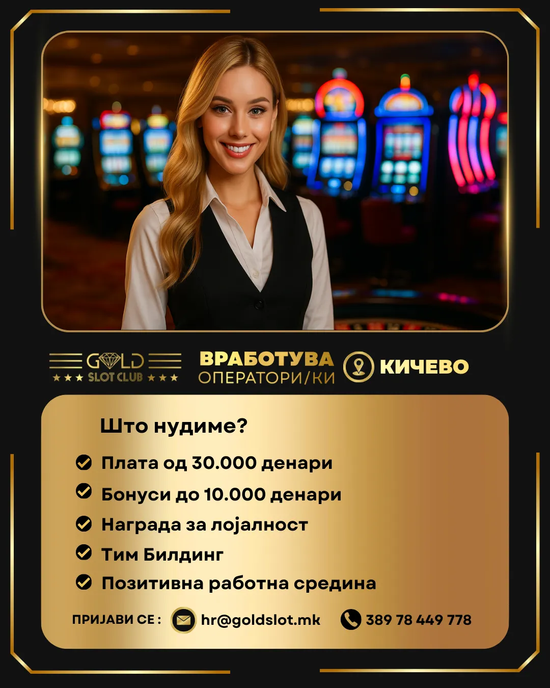 Голд Слот Клуб – Кичево има потреба од професионални и динамични поединци да се приклучат на нашиот тим како оператори/ки!