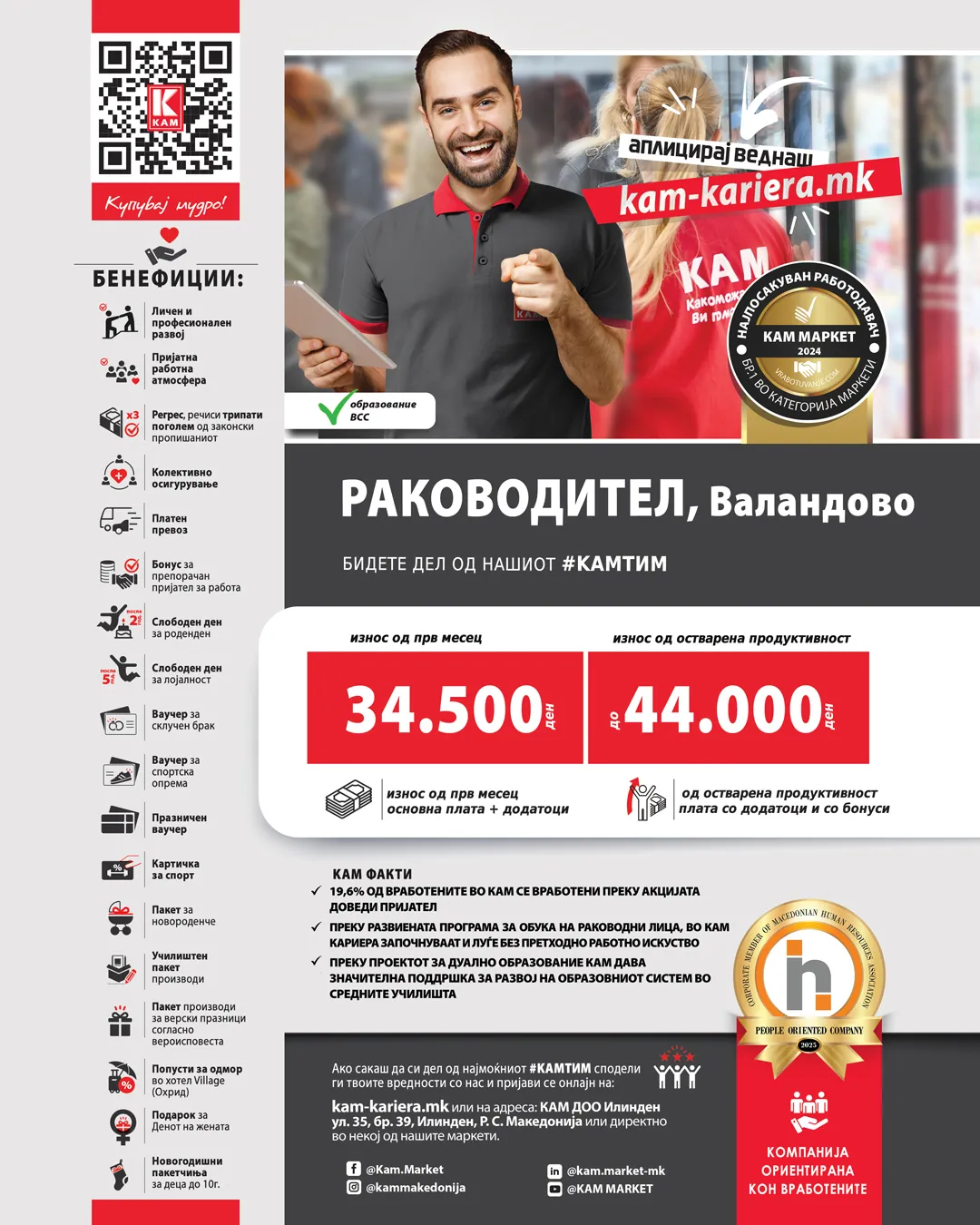 КАМ Доо е најголем национален хард-дисконт и трговец-лидер во малопродажбата во Македонија. КАМ ги следи принципите на хард-дисконт: висок квалитет... повеќе за компанијата »