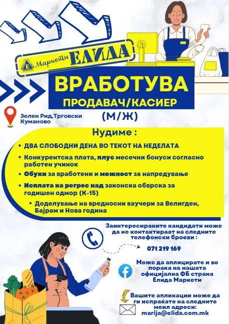 - Позиција: Персонал во продавница/Касиер