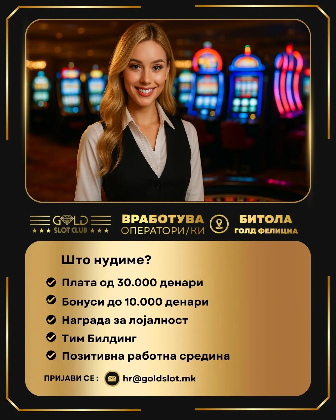 Голд Слот Клуб – Битола, Голд Фелициа има потреба од професионални и динамични поединци да се приклучат на нашиот тим како оператори/ки!