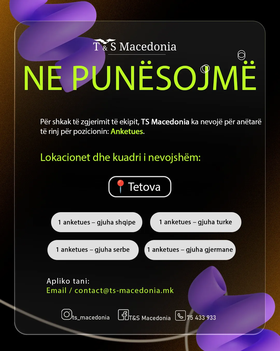 Поради проширување на тимот, TS Macedonia има потреба од нови членови за позицијата Анкетар.