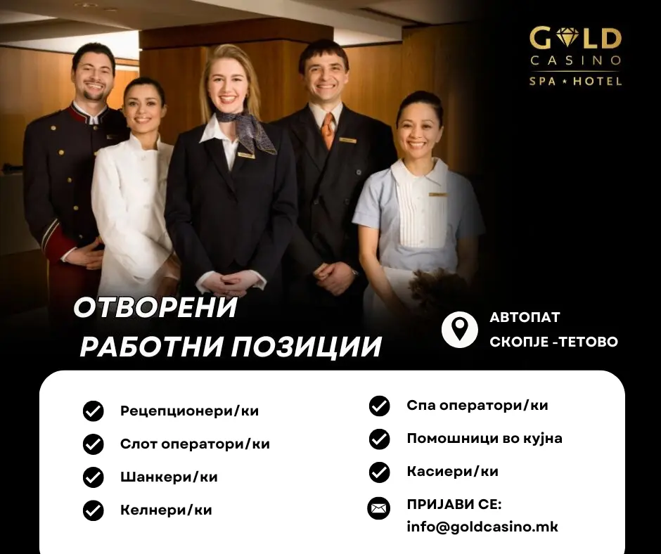 ОТВОРЕНИ РАБОТНИ ПОЗИЦИИ ВО ГОЛД КАЗИНО ТЕТОВО