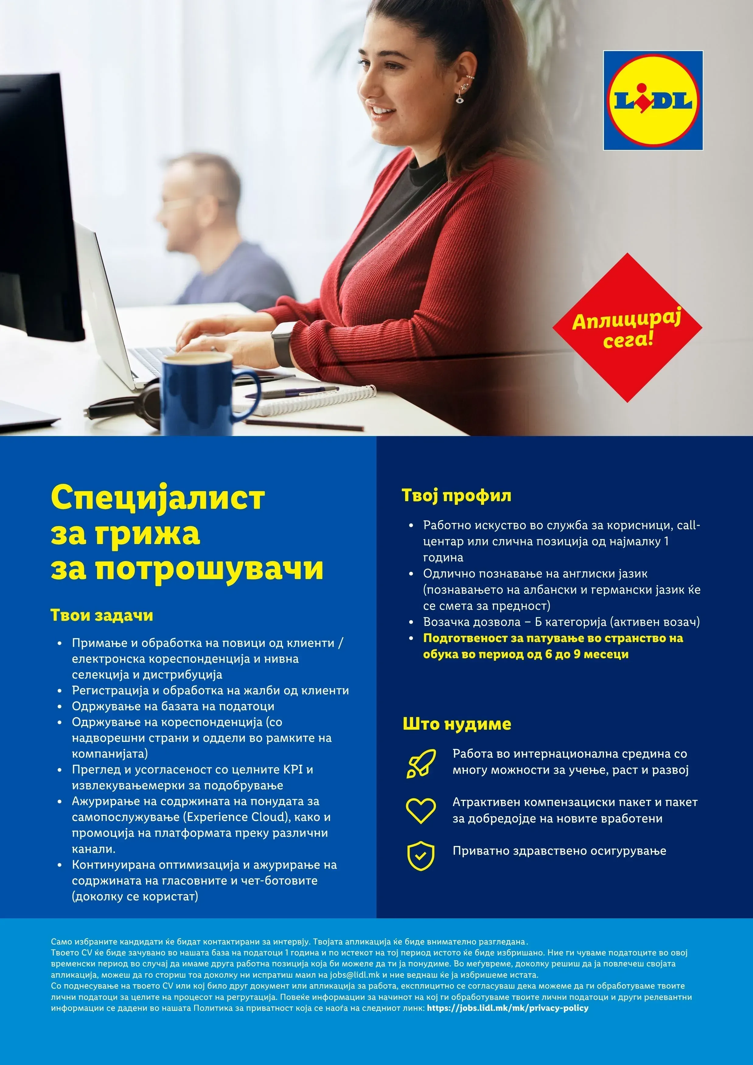 Лидл е семеен бизнис заснован на едноставна филозофија: дека клиентите заслужуваат најквалитетни стоки и намирници по цени што секој може да си ги дозволи. Веќе повеќе од четириесет години, уникатниот... повеќе за компанијата »