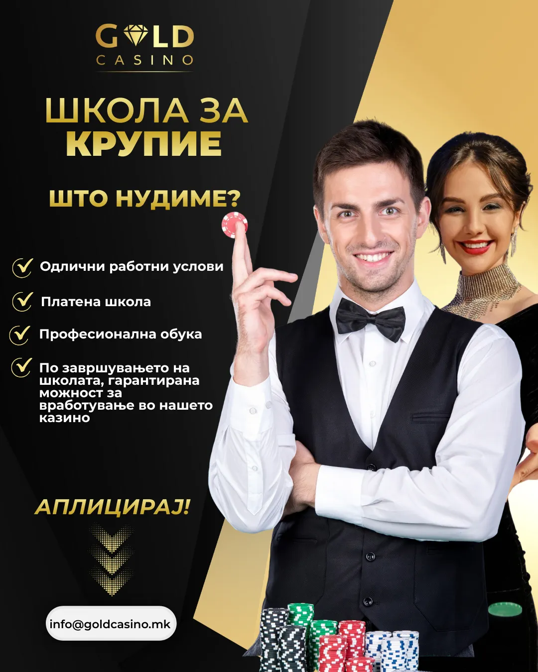 Новиот казино, спа и хотелски комплекс „Голд Казино“ во Тетово ги отвора вратите за сите амбициозни и енергични кандидати кои сакаат да станат дел од нашата Школа за крупие.