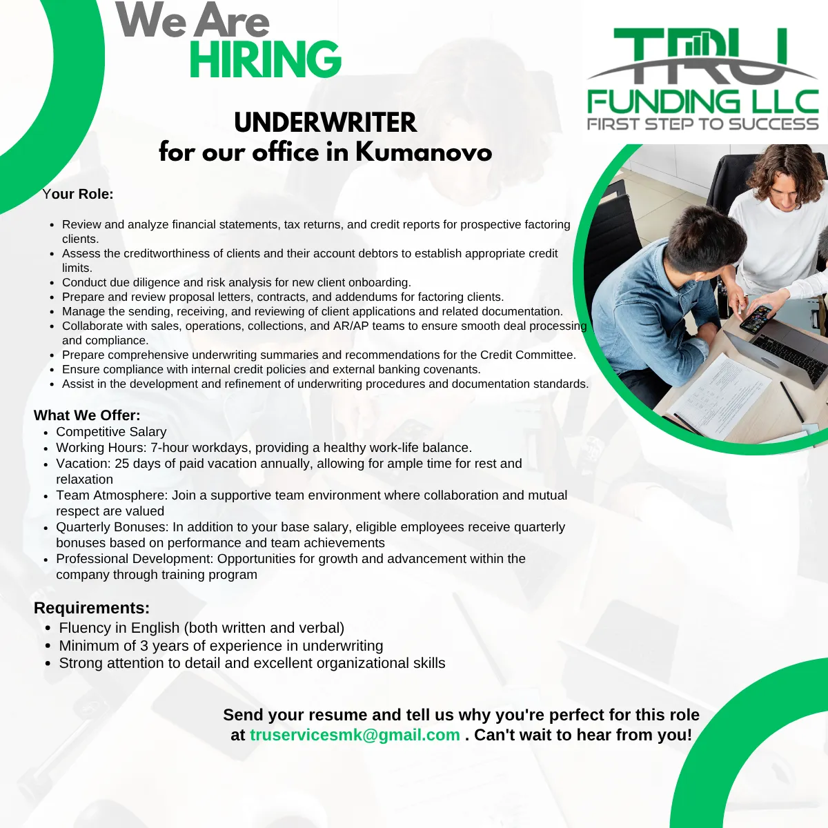За компанијата: Are you looking for an exciting career in finance? Tru International Services is a part of Tru Funding LLC factoring company based in Chicago IL, it is a fast-paced, high-growth industry that helps businesses... повеќе за компанијата »