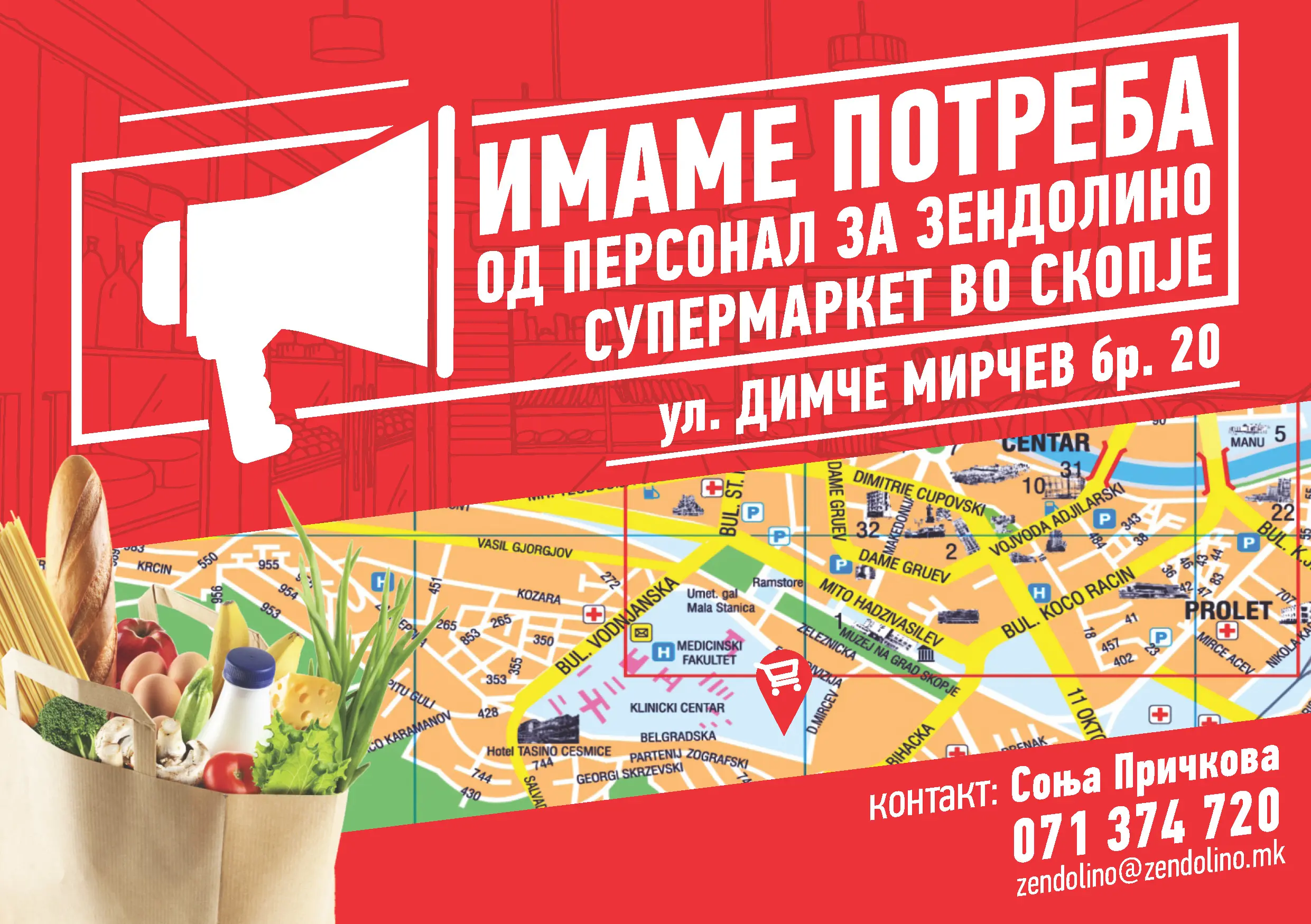 ЗЕНДОЛИНО МАРКЕТИ има потреба од продажен персонал