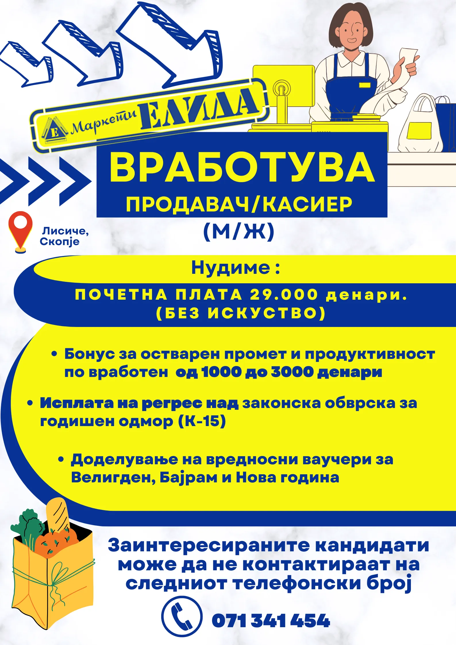 • Позиција: Персонал во продавница/Касиер