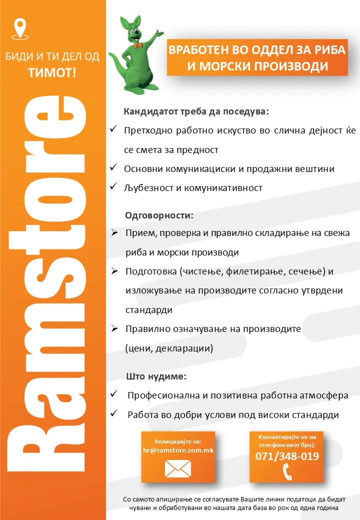 Рамсторе Македонија е една од водечките малопродажни синџири во земјата. Од своето основање во 2005 година, компанијата постојано расте и денес располага со широка мрежа на супермаркети и трговски центри... повеќе за компанијата »