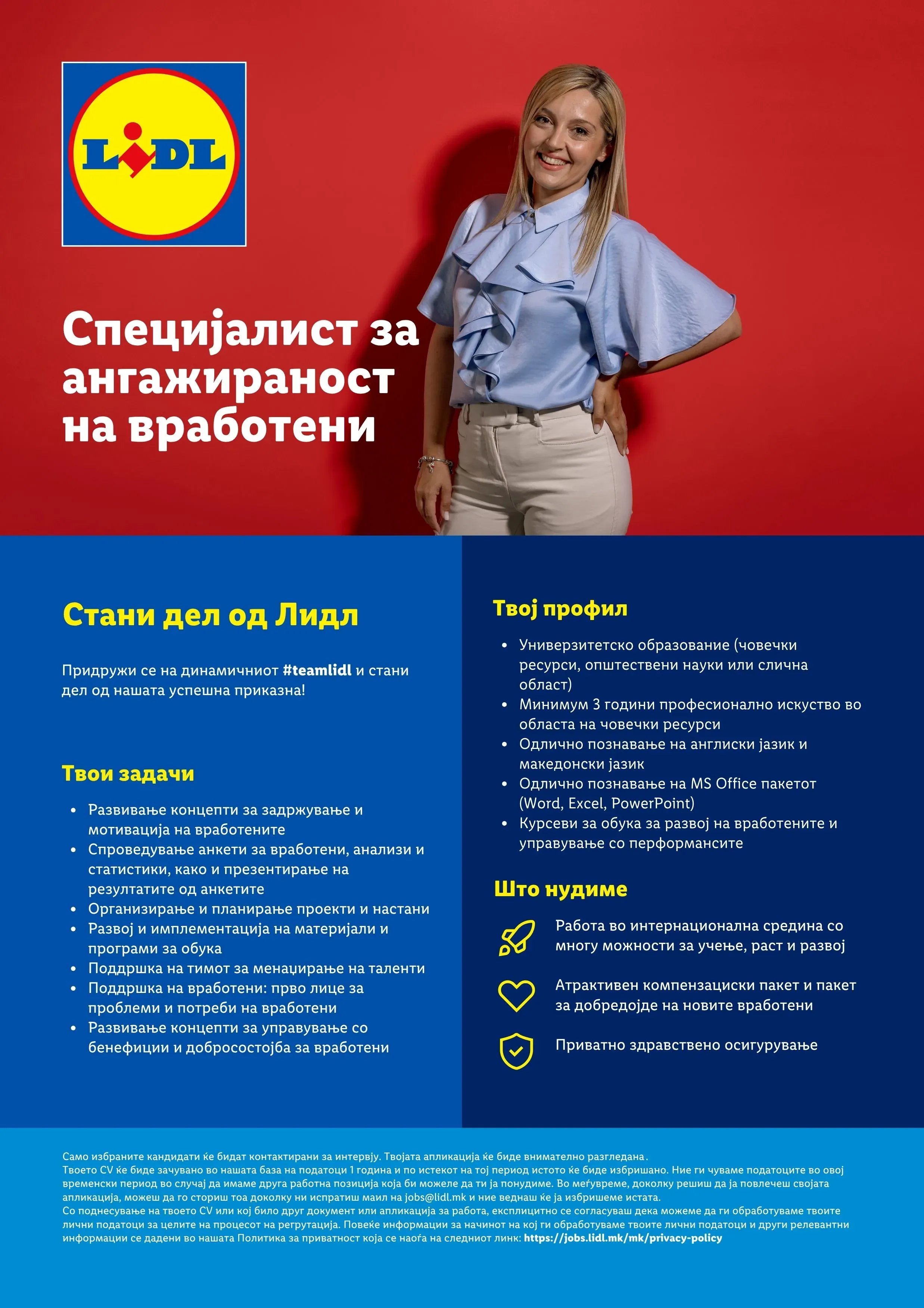 Лидл е семеен бизнис заснован на едноставна филозофија: дека клиентите заслужуваат најквалитетни стоки и намирници по цени што секој може да си ги дозволи. Веќе повеќе од четириесет години, уникатниот... повеќе за компанијата »