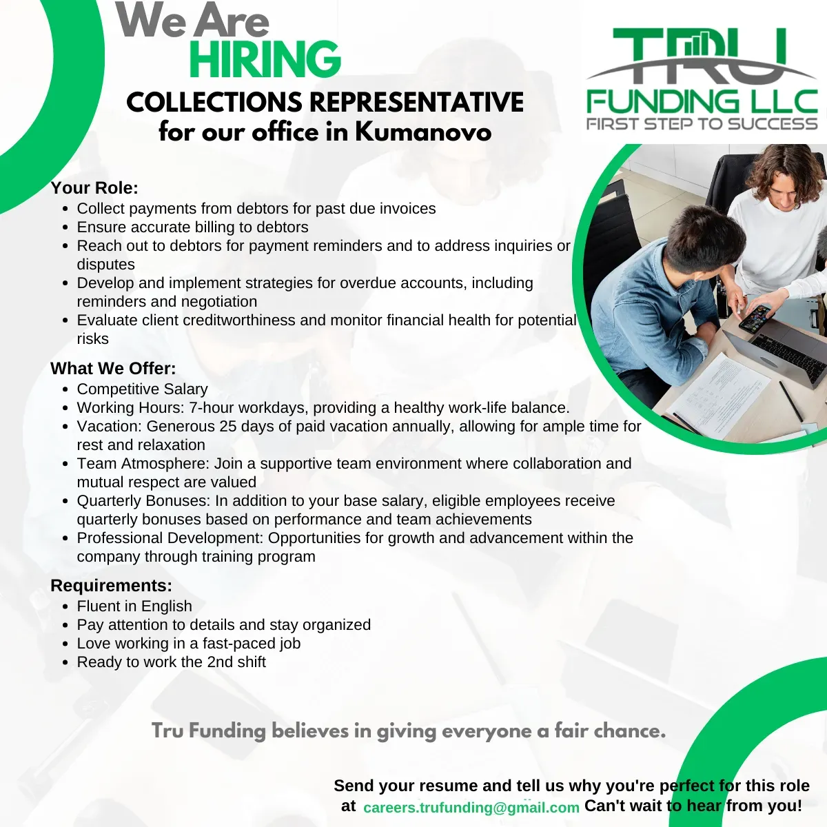 Are you looking for an exciting career in finance? Tru International Services is a part of Tru Funding LLC factoring company based in Chicago IL, it is a fast-paced, high-growth industry that helps... повеќе за компанијата »