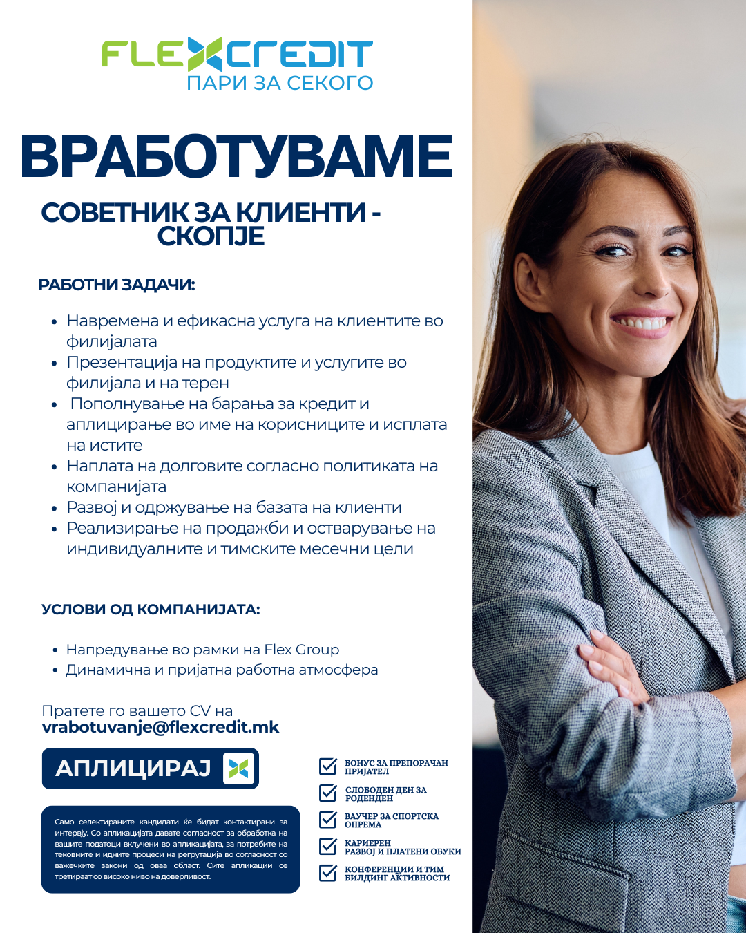 Флекс Кредит ДОО Скопје е Македонска небанкарска финансиска институција, регистрирана од Министерство за финансии на република Северна Македонија под број 13-1659/2.Компанијата обезбедува брзи потрошувачки... повеќе за компанијата »
