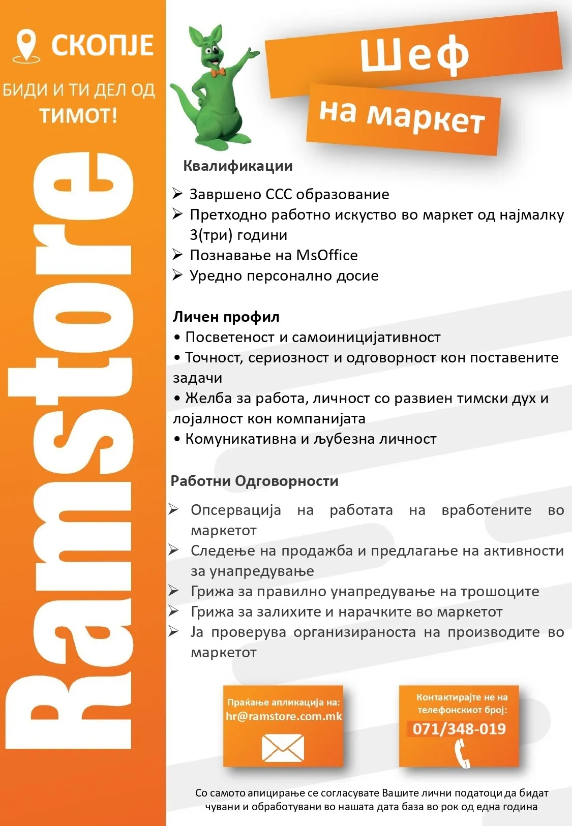 Шеф на маркет - Скопје