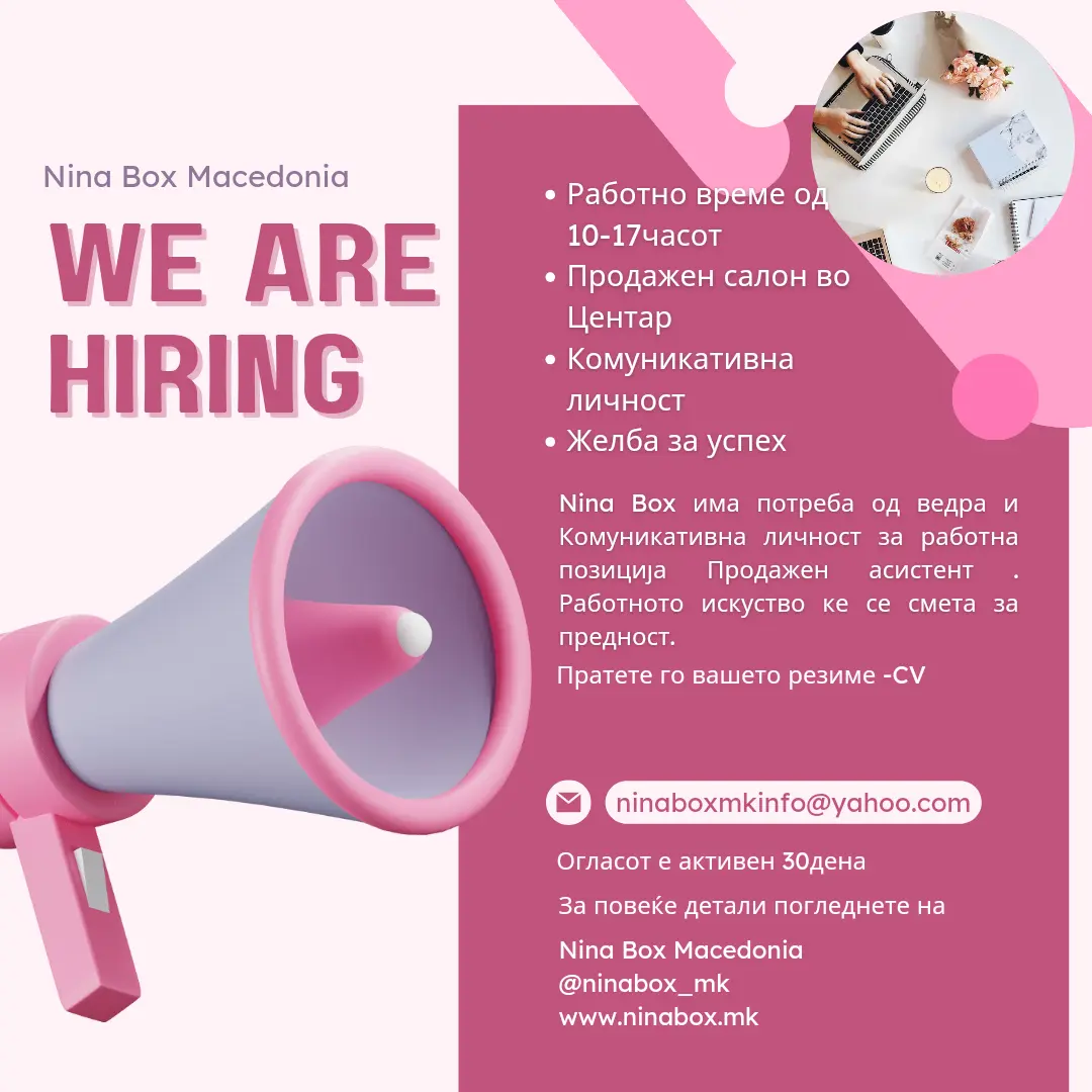 Нина Бох Македонија има потреба од ведра комуникативна личност за работното место