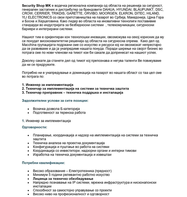 Security Shop е водечка регионална компанија од областа на решенија за сигурност, генерален застапник и дистрибутер за брендовите DAHUA, UNIVIEW, HYUNDAI, BLAUPUNKT, DSC, CROW, CERRIER, TRIKDIS, GARETTE,... повеќе за компанијата »