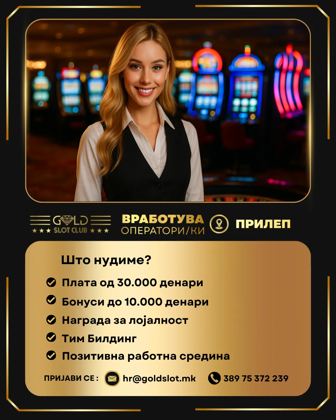 Голд Слот Клуб – Прилеп има потреба од професионални и динамични поединци да се приклучат на нашиот тим како оператори/ки!