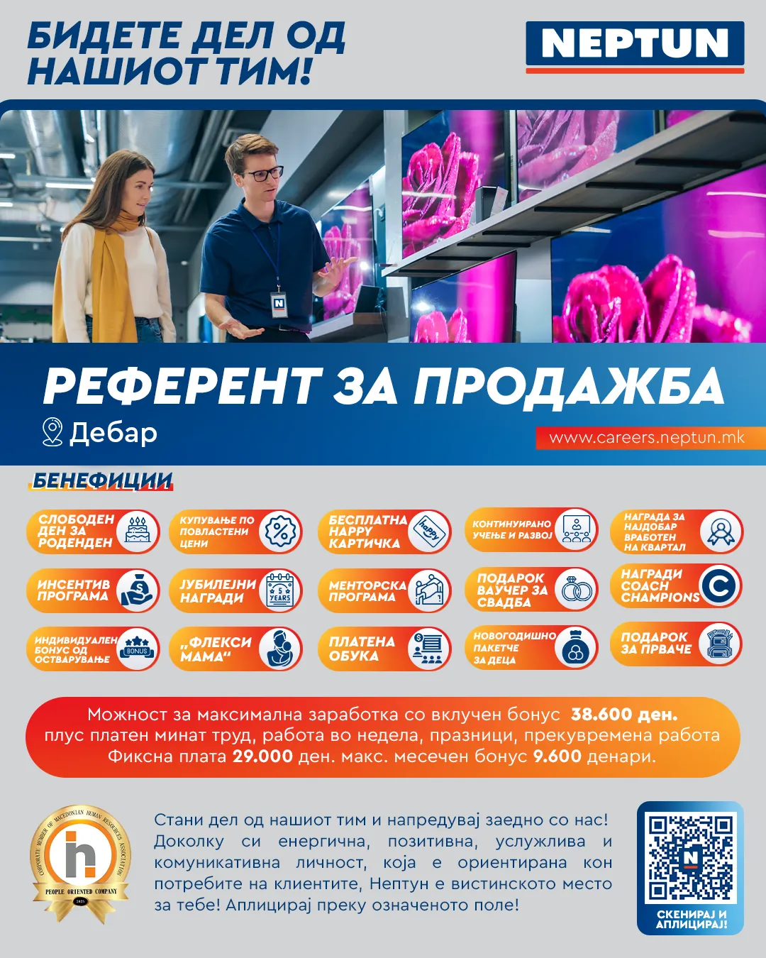 За компанијата: Нептун е бренд име на компанијата Нептун Македонија ДОО Скопје, основана во 1998 година, која во 1999 година станува дел од Нептун Интернешнал и Балфин Групација - Balkan Finance Investment Group. Нептун... повеќе за компанијата »