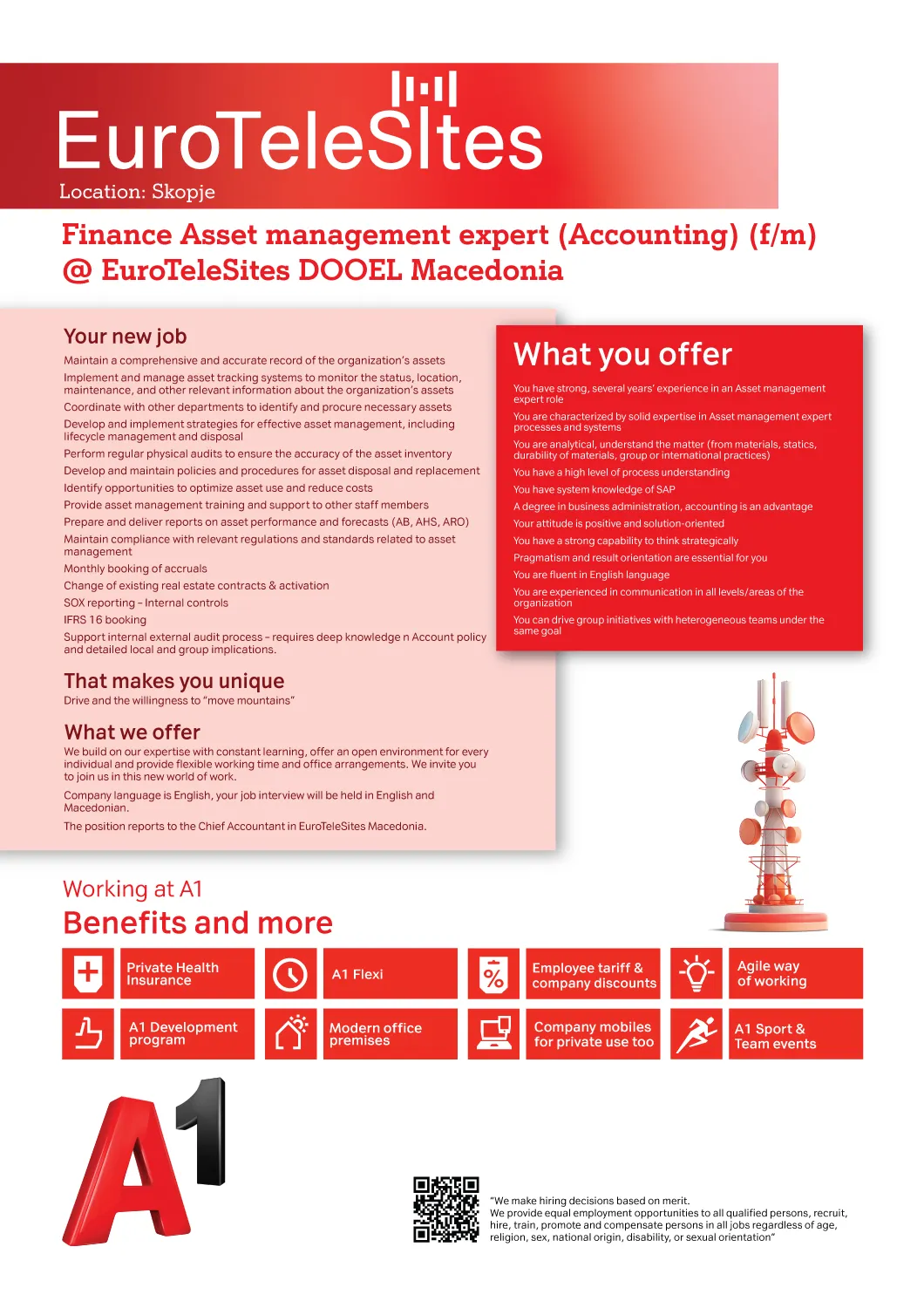 Компанијата А1 Македонија е член на Групацијата А1 Телеком Австрија, водечки провајдер за комуникациски и дигитални решенија во Централна и Источна Европа, којшто работи во седум држави и обезбедува... повеќе за компанијата »