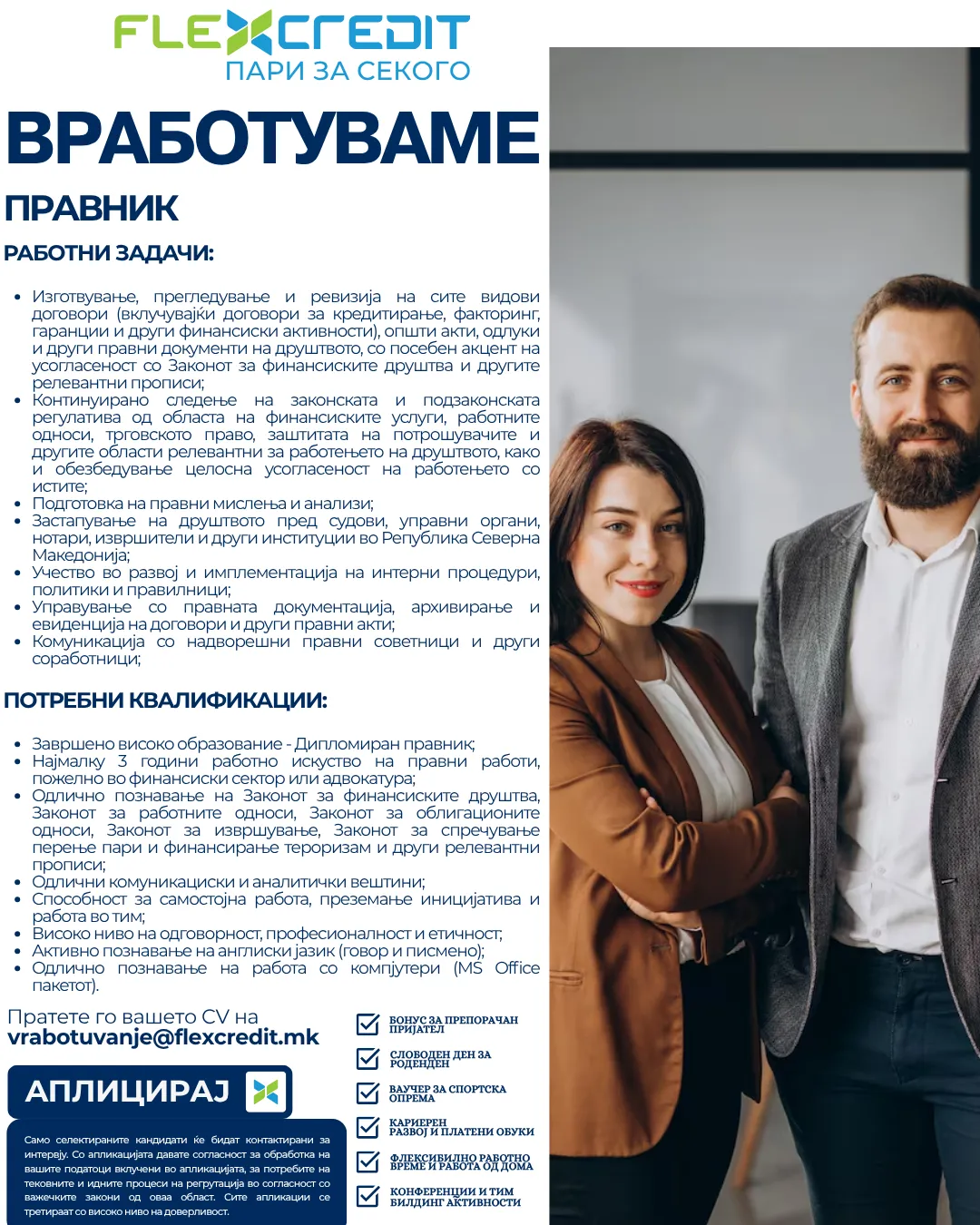 Флекс Кредит ДОО Скопје е Македонска небанкарска финансиска институција, регистрирана од Министерство за финансии на република Северна Македонија под број 13-1659/2.Компанијата обезбедува брзи потрошувачки... повеќе за компанијата »