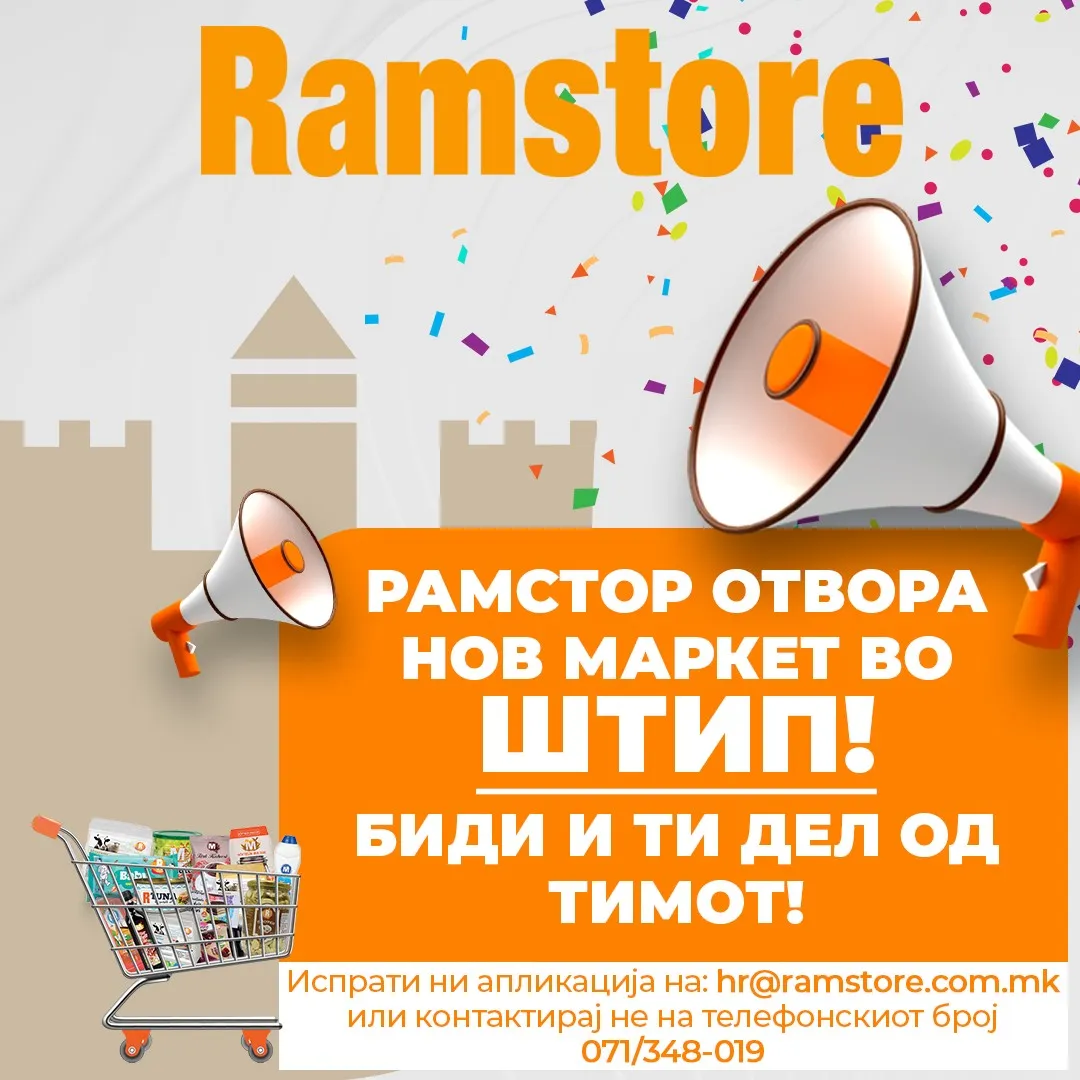 Рамсторе Македонија е една од водечките малопродажни синџири во земјата. Од своето основање во 2005 година, компанијата постојано расте и денес располага со широка мрежа на супермаркети и трговски центри... повеќе за компанијата »