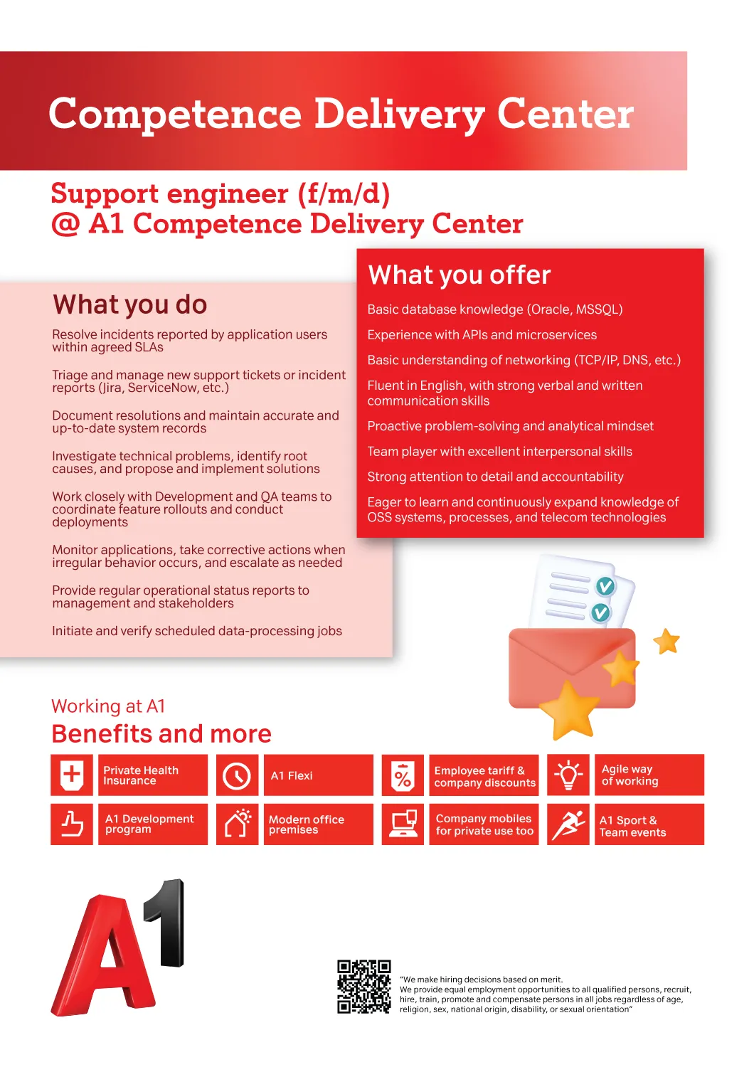 Компанијата А1 Македонија е член на Групацијата А1 Телеком Австрија, водечки провајдер за комуникациски и дигитални решенија во Централна и Источна Европа, којшто работи во седум држави и обезбедува... повеќе за компанијата »