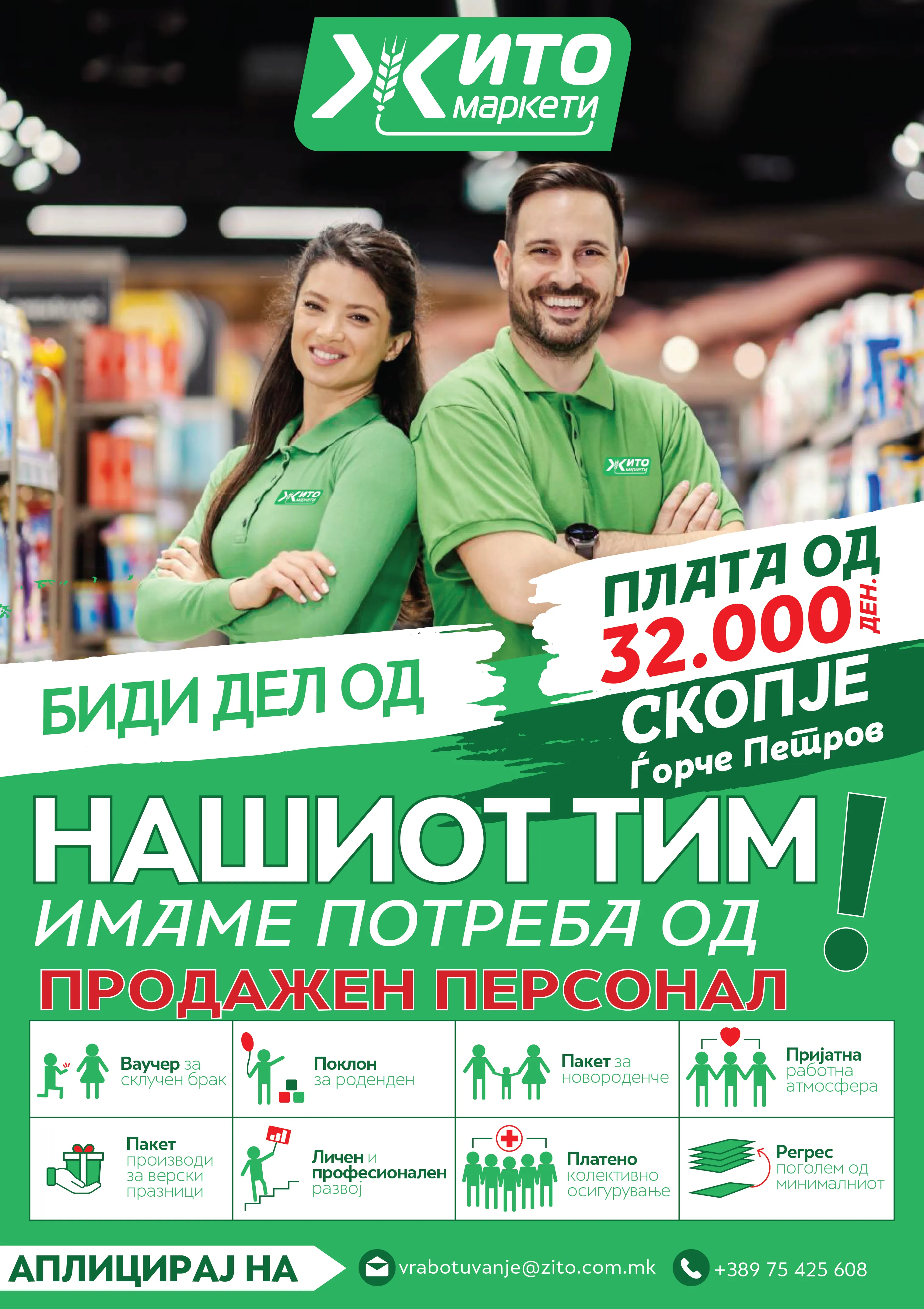 Продажен Персонал - Илинден - Заменик Раководител на Маркет - Аеродром - Продажен Персонал - Петровец - Продажен Персонал - Скопје нас.Аеродром - Заменик раководител на Маркет - Ѓорче Петров - Продажен персонал - Кисела Вода - Магационер