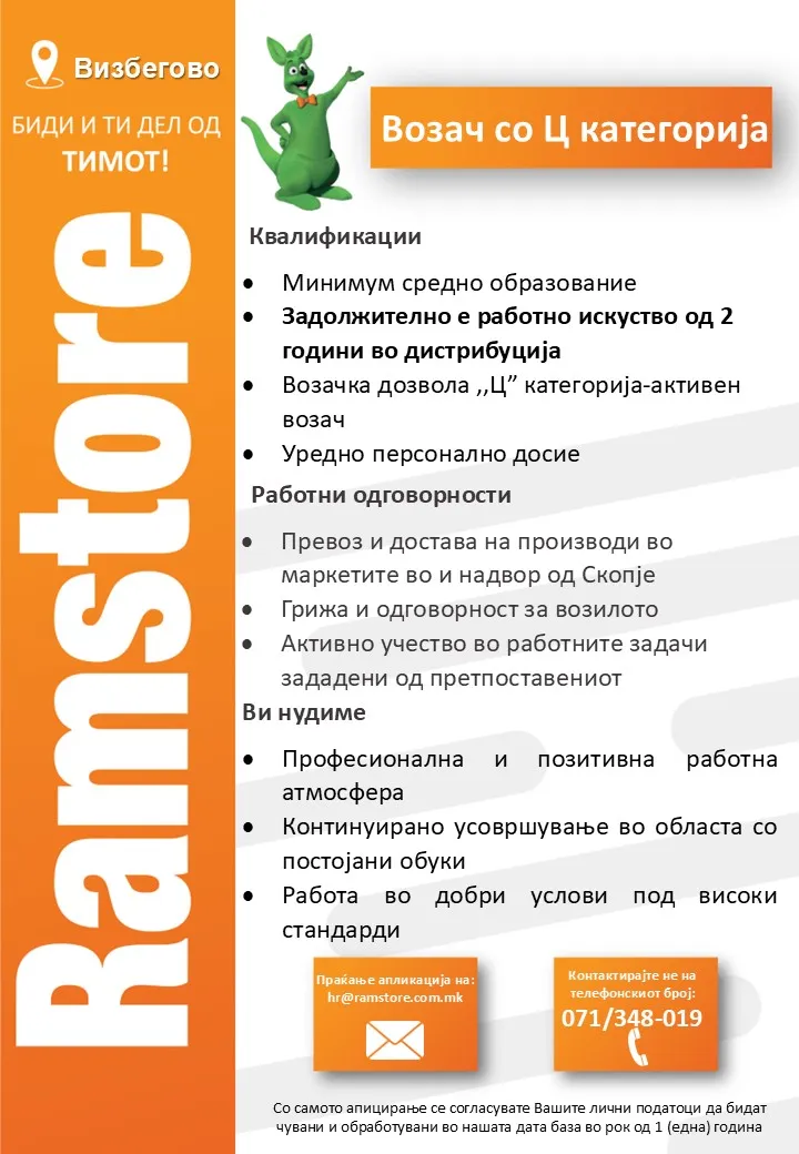 Рамсторе Македонија е една од водечките малопродажни синџири во земјата. Од своето основање во 2005 година, компанијата постојано расте и денес располага со широка мрежа на супермаркети и трговски центри... повеќе за компанијата »