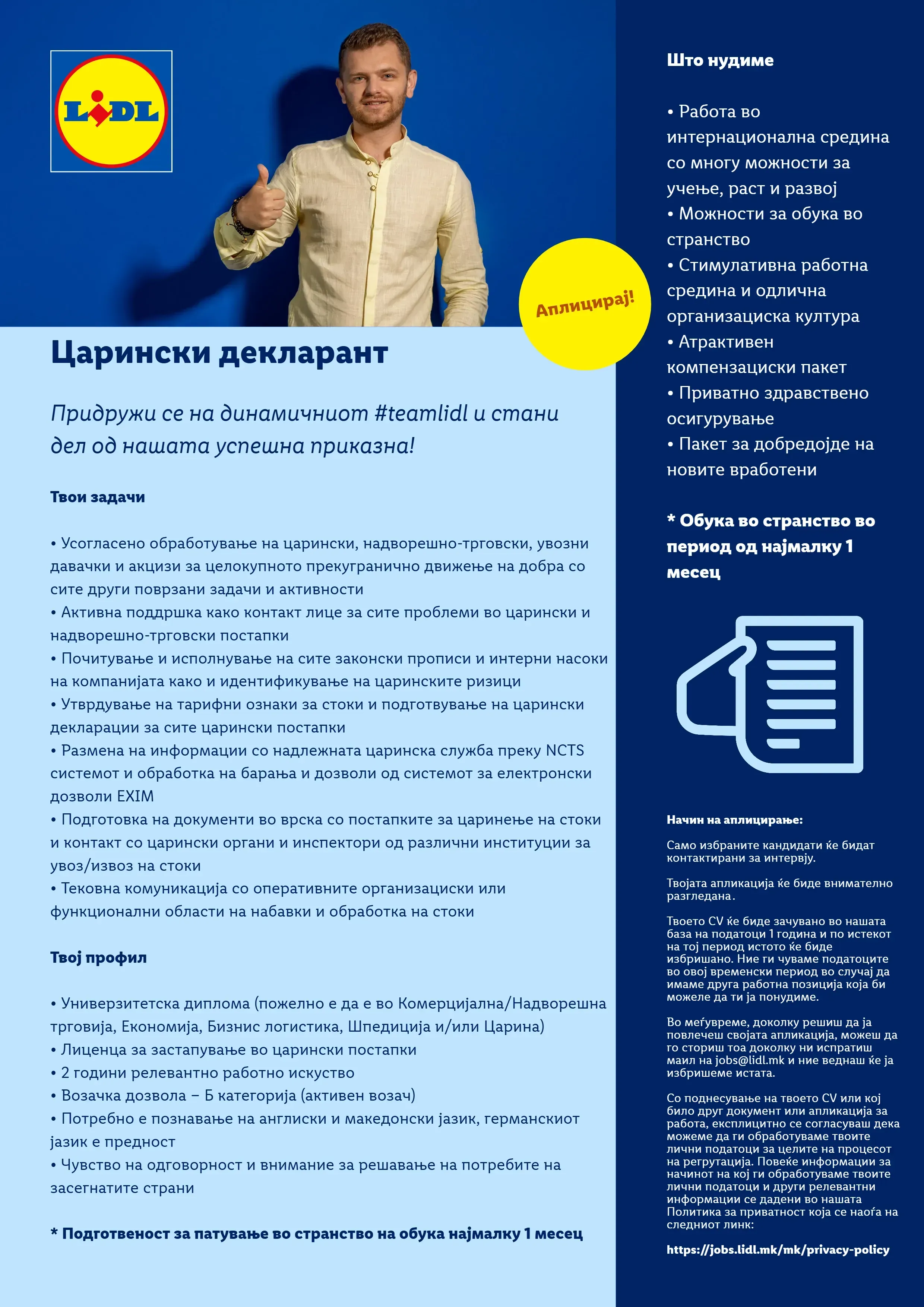Лидл е семеен бизнис заснован на едноставна филозофија: дека клиентите заслужуваат најквалитетни стоки и намирници по цени што секој може да си ги дозволи. Веќе повеќе од четириесет години, уникатниот... повеќе за компанијата »