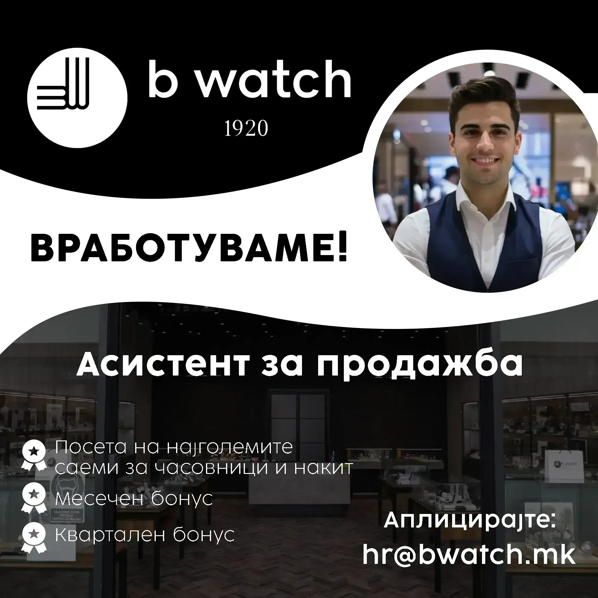 Брендот B Watch е многу добро познат кај нас. Датира уште во далечната 1920 год, започнувајќи како семејна традиција на продажба, дистрибуција како и сервисирање на висококвалитетни часовници и накит.