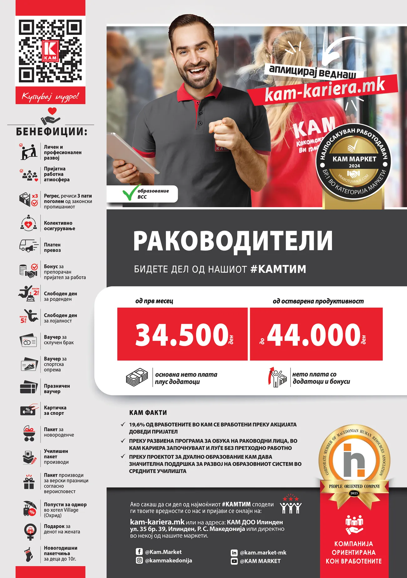 КАМ Доо е најголем национален хард-дисконт и трговец-лидер во малопродажбата во Македонија. КАМ ги следи принципите на хард-дисконт: висок квалитет... повеќе за компанијата »
