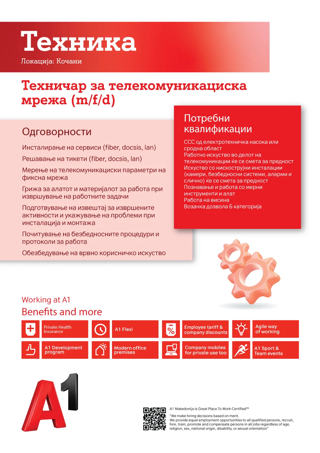 Компанијата А1 Македонија е член на Групацијата А1 Телеком Австрија, водечки провајдер за комуникациски и дигитални решенија во Централна и Источна Европа, којшто работи во седум држави и обезбедува... повеќе за компанијата »