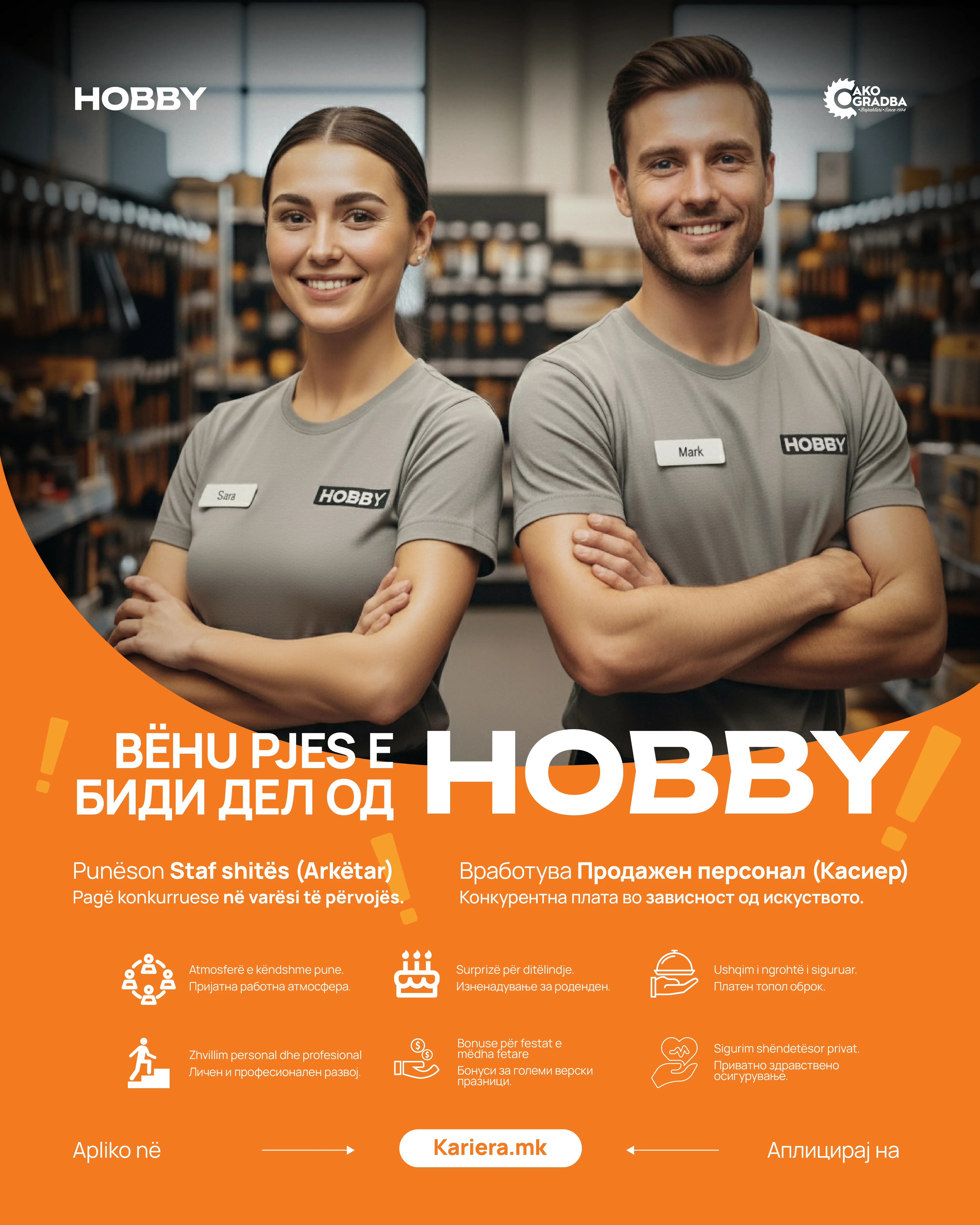 Компанијата HOBBY, дел од „Ako Gradba“, објавува оглас за вработување на позиција: