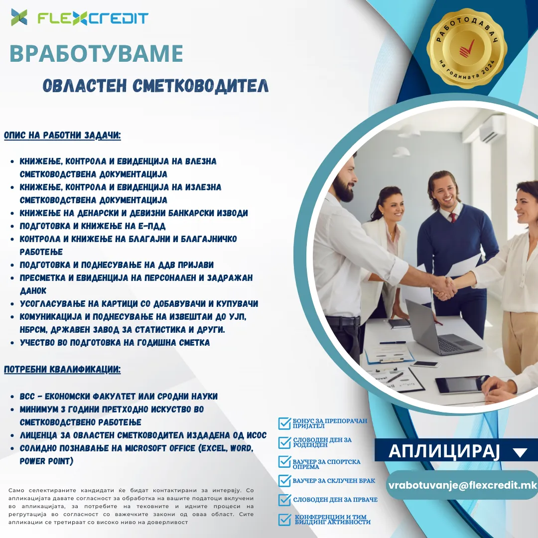 Флекс Кредит ДОО Скопје е Македонска небанкарска финансиска институција, регистрирана од Министерство за финансии на република Северна Македонија под број 13-1659/2.Компанијата обезбедува брзи потрошувачки... повеќе за компанијата »